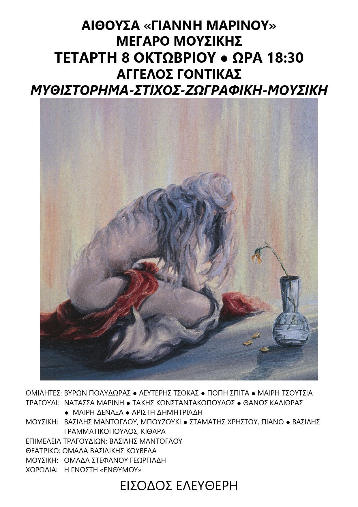 08 Οκτ 2025 / 18:30 Περιγραφή: megaro_moysikis_8.10.2025_page-0001.jpg Χώρος: Αίθουσα Γιάννης ΜαρίνοςΚόστος: Είσοδος ελεύθερη