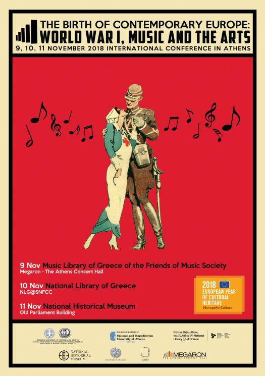 37 ομιλητές από τη διεθνή επιστημονική κοινότητα θα αναλύσουν μουσικολογικά και ιστορικά ζητήματα που σχετίζονται με τον Α’ Παγκόσμιο Πόλεμο και την καλλιτεχνική δημιουργία εκείνης της περιόδου σε ένα τριήμερο Διεθνές Συνέδριο με τίτλο : “The Birth of Contemporary Europe: World War I, Music and the Arts” στο πλαίσιο των δράσεων του Ευρωπαϊκού Έτους Πολιτιστικής Κληρονομιάς 2018.