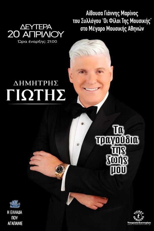 Αυτή τη φορά στο Μέγαρο Μουσικής Αθηνών. Την Δευτέρα στις 20 Απριλίου στις 21:00 στην Βιβλιοθήκη του συλλόγου "ΟΙ ΦΙΛΟΙ ΤΗΣ ΜΟΥΣΙΚΗΣ" στην αίθουσα "Γιάννης Μαρίνος" ο Δημήτρης Γιώτης με μια παρέα αξιόλογων μουσικών και έχοντας στο πλευρό του δύο ταλαντούχες ερμηνεύτριες, την Μαίρη Αθανασίου και την Ευελίνα Μπούρα, θα παρουσιάσει ένα ξεχωριστό αφιέρωμα σε επιλεγμένα τραγούδια που στιγμάτισαν την πορεία του αλλά και την νεότερη Ελλάδα.
