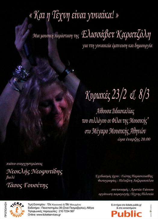 Θα ακουστούν ποιήματα που υμνούν την γυναίκεια παρουσία από σπουδαίους ποιητές (Τίτος Πατρίκιος, Διονύσιος Σολωμός, Σιμόν Ντε Μποβουάρ κ.α)