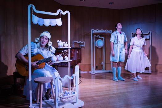 Τα όμορφα κοστούμια και σκηνικά της Αλεξίας Χρυσοχοΐδου και ο προσεκτικός σχεδιασμός φωτισμών του Τάσου Παλαιορούτα προσθέτουν μια ονειρική ατμόσφαιρα στην παράσταση.