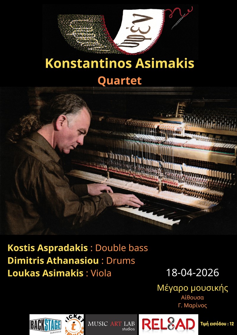 18 Απρ 2026 / 19:00 Περιγραφή: b_61048_or_konstantinos_asimakis.jpg Χώρος: Αίθουσα Γιάννης ΜαρίνοςΑγορά εισιτηρίωνΚόστος: 12€ Γενική εισόδος
