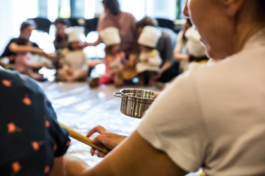 Οι μουσικοί σεφ και οι γονείς τους γίνονται μια ευχάριστη παρέα που χρησιμοποιώντας κουζινικά σκεύη και βρώσιμα υλικά, καλούνται όχι μόνο να κατανοήσουν τις βασικές μουσικές αρχές αλλά και να δημιουργήσουν μια αυτοσχέδια μουσική σύνθεση. Έτσι, μικροί και μεγάλοι, γίνονται μέλη της πιο ευφάνταστης μουσικής ορχήστρας! Η αυτοσχέδια μουσική σύνθεση θα ηχογραφείται και θα αποστέλλεται στους συμμετέχοντες σε MP3.