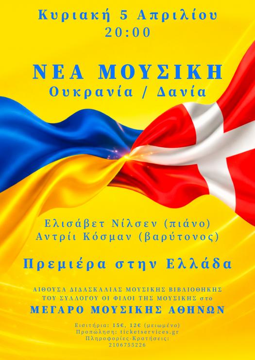 Ο σολίστας της Nova Opera, Αντρίι Κόσμαν, θα ερμηνεύσει μουσική σύγχρονων ουκρανών και δανών συνθετών συνοδευόμενος από την δανσο-ουκρανή πιανίστρια Ελισάβετ Νίλσεν. Στο πρόγραμμα θα παρουσιαστούν έργα των Βαλεντίν Σιλβέστρωφ, Βικτώρια Πολιοβά, Σεργκίι Ζαζίτκο, Αντρέι Μέρχελ, Γιάνα Σλιάμπανσκα, Σεργκίι Βίλκα, Ρομάν Γκριγκόριβ, Per Nørgård, Niels Rosing-Schow και άλλων. Ορισμένα από τα κομμάτια γράφτηκαν ειδικά για αυτό το ντουέτο και θα παρουσιαστούν για πρώτη φορά.