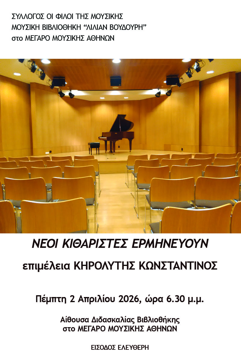 02 Απρ 2026 / 18:30 Περιγραφή: synavlies_kirolitis_2_4_2026_copy.jpg Χώρος: Αίθουσα ΔιδασκαλίαςΚόστος: Είσοδος ελεύθερη