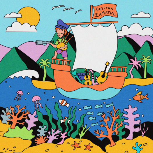 Με τα όργανα που κουβαλάει μαζί του –γκάιντα, καβάλ, μπουζούκι, ιδιόφωνα κρουστά– αλλά και με όποιο αντικείμενο βρει μπροστά του –από ποτήρια και κανάτες μέχρι κοχύλια και κατσαρολικά– δημιουργεί ήχους, ρυθμούς και μελωδίες, διασχίζοντας τη θάλασσα και μαγεύοντας τα παιδιά, σε μια μοναδική θαλασσινή περιπέτεια.