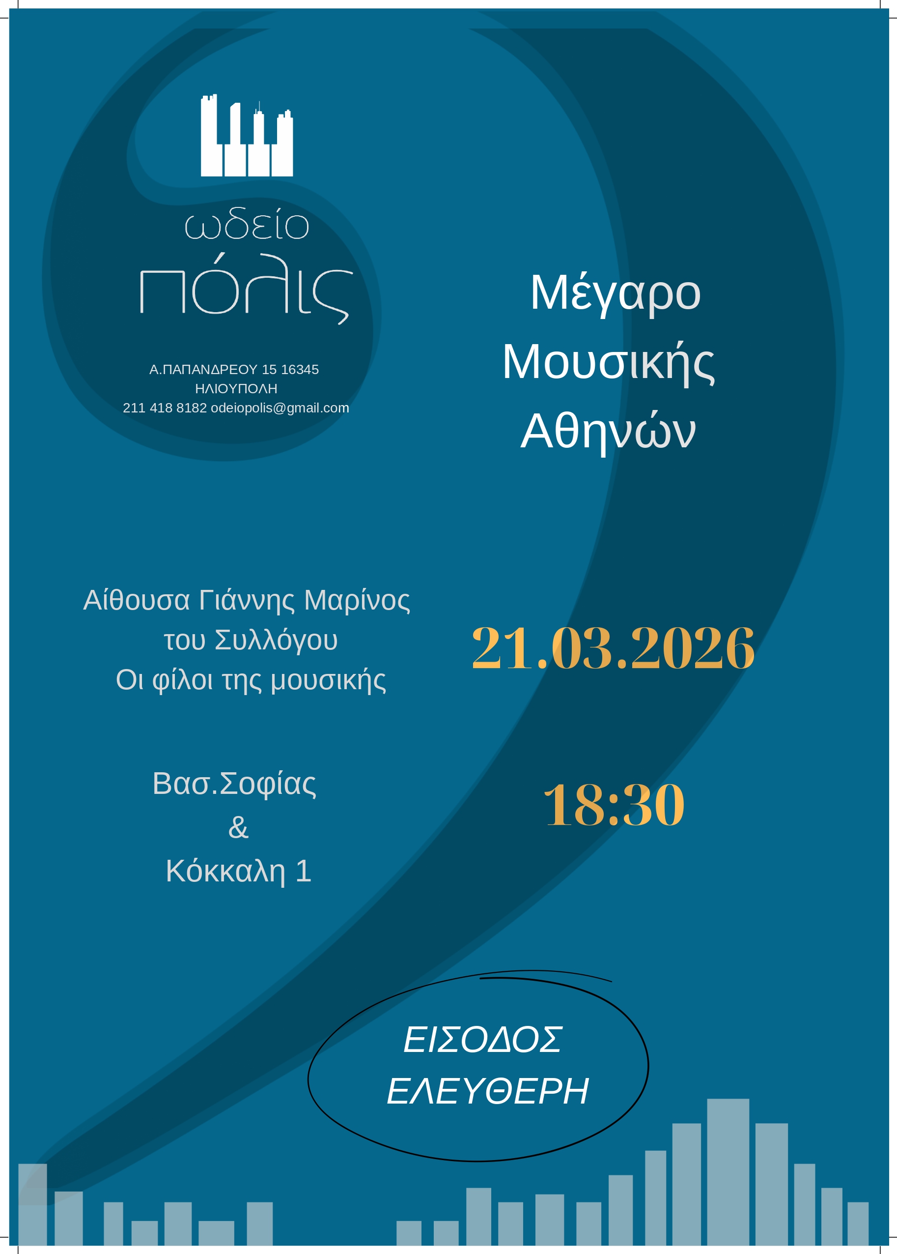 21 Μαρ 2026 / 18:30 Περιγραφή: 21.03_2026_page-0001.jpg Χώρος: Αίθουσα Γιάννης ΜαρίνοςΚόστος: Είσοδος ελεύθερη