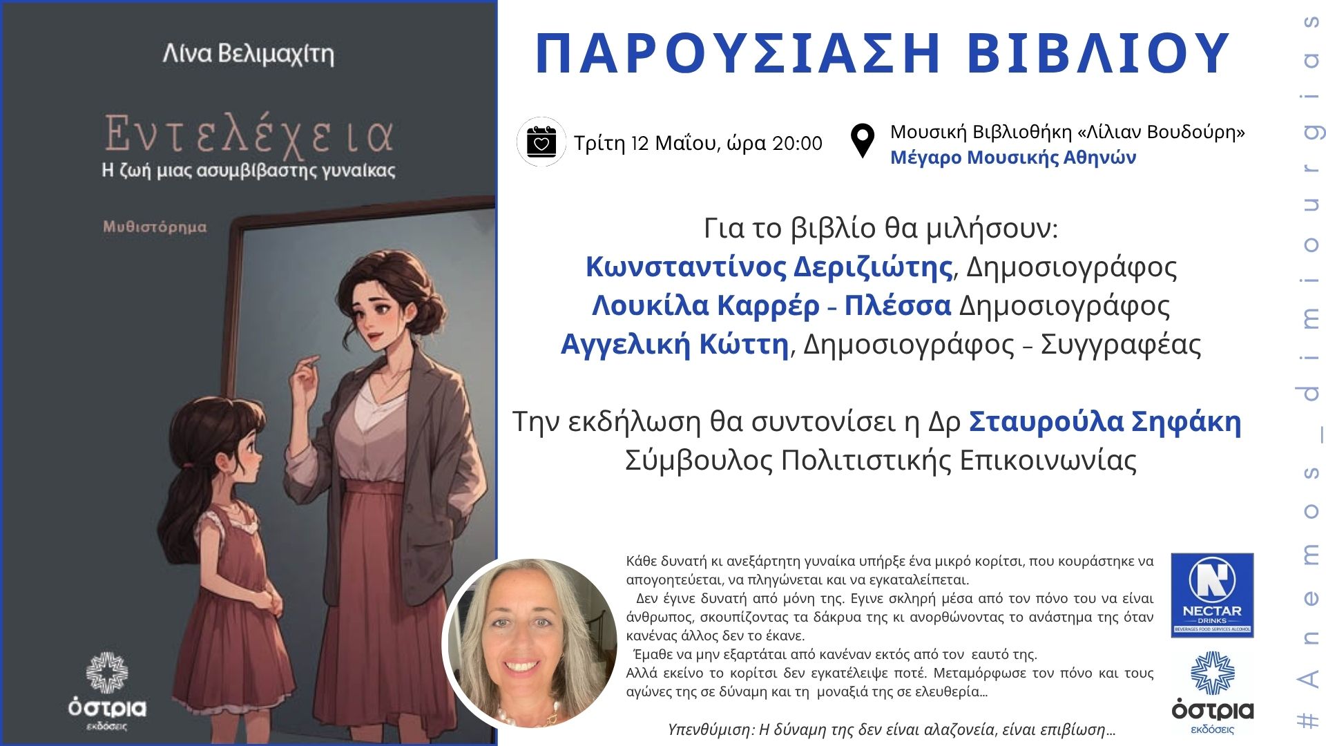 Παρουσίαση βιβλίου: «Εντελέχεια: Η ζωή μιας ασυμβίβαστης γυναίκας» της Λίνας Βελιμαχίτη
