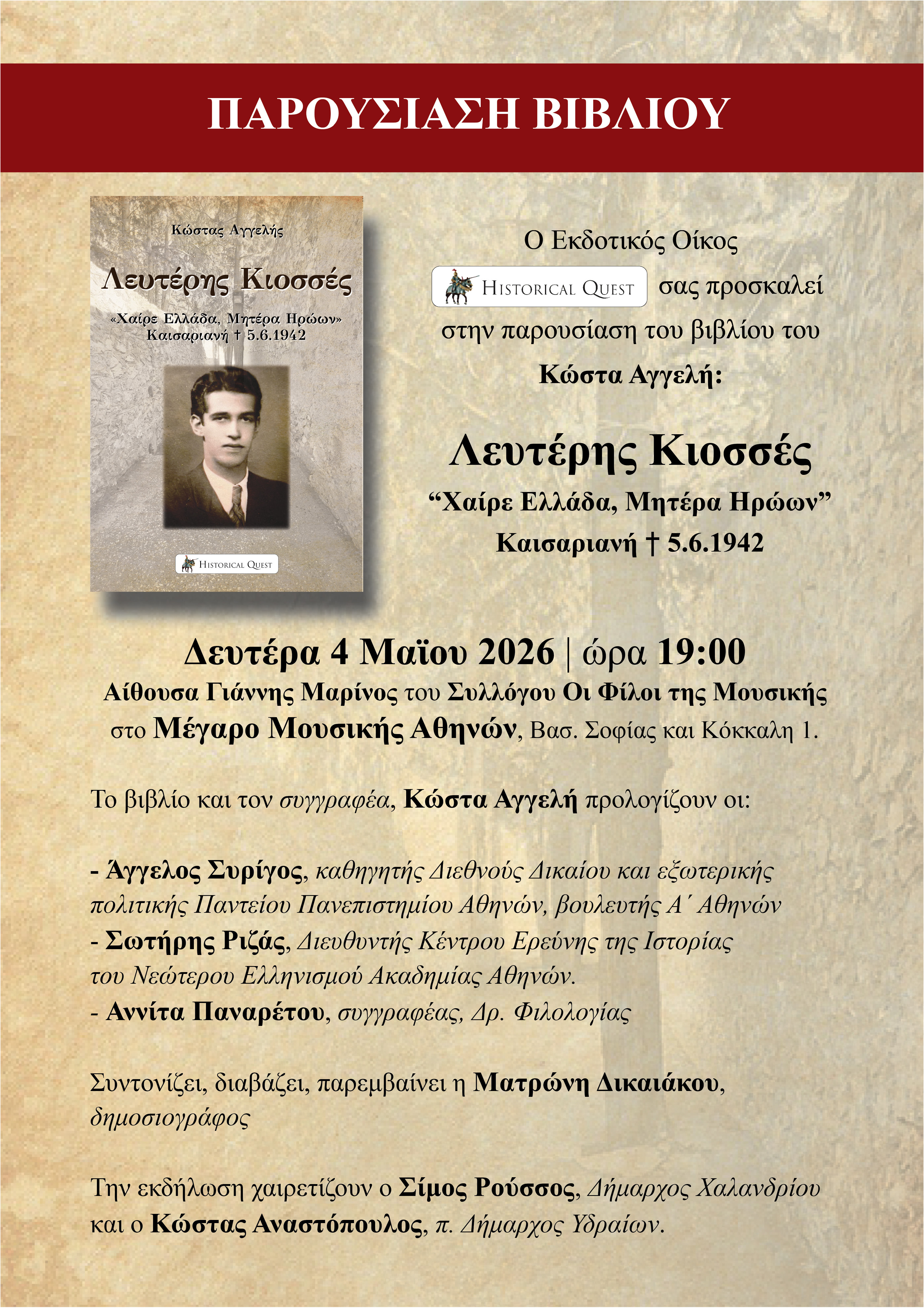 Παρουσίαση βιβλίου: «Λευτέρης Κιοσσές» του Κώστα Αγγελή