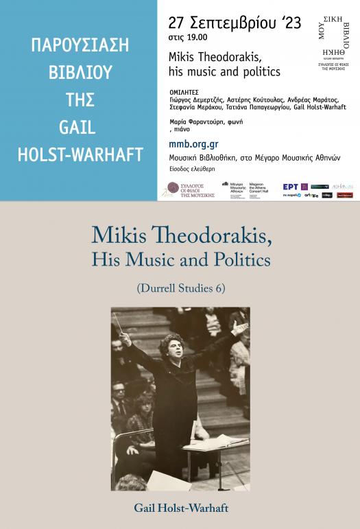 Πλαισιωμένη από μελετητές και συνεργάτες του μεγάλου μουσουργού, η ίδια η συγγραφέας θα μιλήσει για το νέο της βιβλίο με τίτλο Μikis Τheodorakis, his music and politics (Gail Holst-Warhaft, Cambridge Scholars Publishing, Durrell Studies 7, 2023).