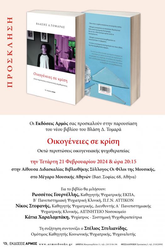 Οι εκδόσεις ΑΡΜΟΣ σας προσκαλούν στην παρουσίαση του βιβλίου: "Οικογένειες σε κρίση" του Βλάση Τομαρά.