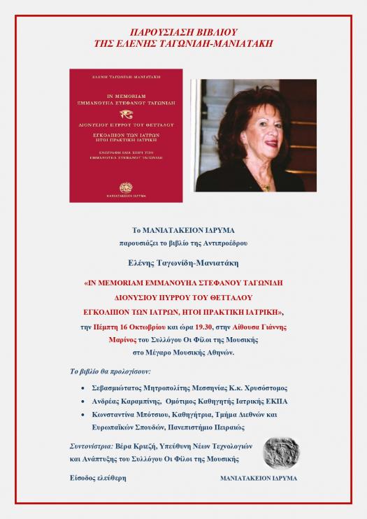 Παρουσίαση βιβλίου της Ελένης Ταγωνίδη-Μανιατάκη