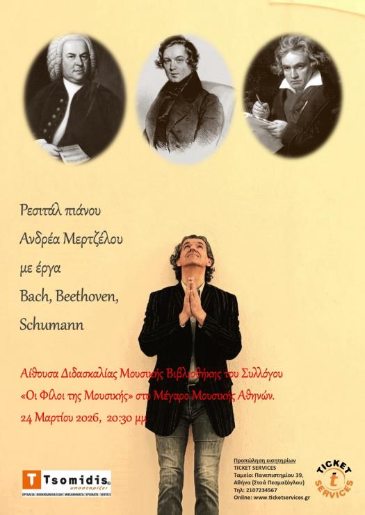 Η Αίθουσα Διδασκαλίας Μουσικής Βιβλιοθήκης του Συλλόγου «Οι Φίλοι της Μουσικής» στο Μέγαρο Μουσικής Αθηνών υποδέχεται τον πιανίστα Ανδρέα Μερτζέλο για ένα μοναδικό ρεσιτάλ την Τρίτη 24 Μαρτίου και ώρα 20:30.
