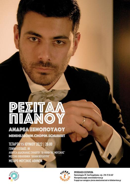 Ο πιανίστας Ανδρέας Ξενόπουλος θα παρουσιάσει την Τετάρτη 15 Ιουνίου στις 8 το βράδυ στο Μέγαρο Μουσικής Αθηνών, ρεσιτάλ πιάνου με έργα ιστορικής σημασίας. Στην Αίθουσα Διδασκαλίας του Συλλόγου “ Οι Φίλοι της Μουσικής” στην Μουσική Βιβλιοθήκη “Λίλιαν Βουδούρη” θα ακουστούν ανάμεσα σε άλλα, τρία έργα ορόσημο, οι “Σοβαρές Παραλλαγές” του Φέλιξ Μέντελσον, η δεύτερη σονάτα για πιάνο του Φρέντερικ Σοπέν και η “Φαντασία του Οδοιπόρου” του Φράνς Σούμπερτ. Ο πιανίστας προσεγγίζει τρία θέματα της ανθρώπινης φύσης, την στροφή προς το παρελθόν (Μέντελσον), τον θάνατο (Σοπέν) και το ταξίδι προς το άγνωστο (Σούμπερτ) που θα σχολιαστούν μουσικά ανακλώντας την ανήσυχη σκέψη του καλλιτέχνη. Η διεθνούς φήμης πιανίστα Eri Nakagawa χαρακτήρισε τον Ανδρέα Ξενόπουλο πιανίστα εξαιρετικής δεξιοτεχνίας με υψηλή μουσική αντίληψη.