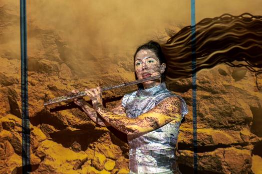 Στο έργο, που είναι ειδική παραγγελία για τον χώρο της Μουσικής Βιβλιοθήκης (site specific), τρεις ταλαντούχοι ηθοποιοί-μουσικοί ερμηνεύουν τους ρόλους, τραγουδάνε και παίζουν ζωντανά μουσική, δίνοντας την ευκαιρία στα παιδιά να παρακολουθήσουν μια συναρπαστική ιστορία και παράλληλα να δουν και να ακούσουν από απόσταση αναπνοής τα τρία αυτά όργανα.