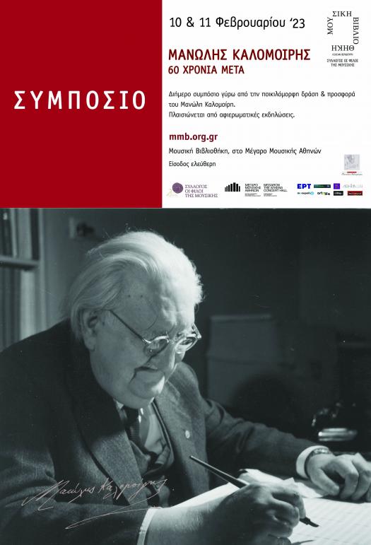 Με αφορμή την επέτειο συμπλήρωσης 60 χρόνων από το θάνατο του Μανώλη Καλομοίρη (1883-1962), παράλληλα με την έκθεση προς τιμήν του, η Μουσική Βιβλιοθήκη «Λίλιαν Βουδούρη», σε συνεργασία με το Σύλλογο «Μανώλης Καλομοίρης», διοργανώνει ένα διήμερο συμπόσιο που θα διεξαχθεί την Παρασκευή 10 και το Σάββατο 11 Φεβρουαρίου 2023 στη Μουσική Βιβλιοθήκη «Λίλιαν Βουδούρη».