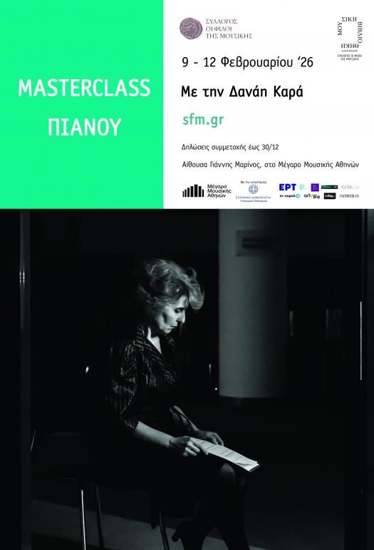 Την Πέμπτη 12 Φεβρουαρίου θα πραγματοποιηθεί η καταληκτική συναυλία του masterclass πιάνου της Δανάης Καρά, στις 18:00 στην Αίθουσα Γιάννης Μαρίνος στο Μέγαρο Μουσικής, ανοιχτή με ελεύθερη είσοδο στο κοινό.