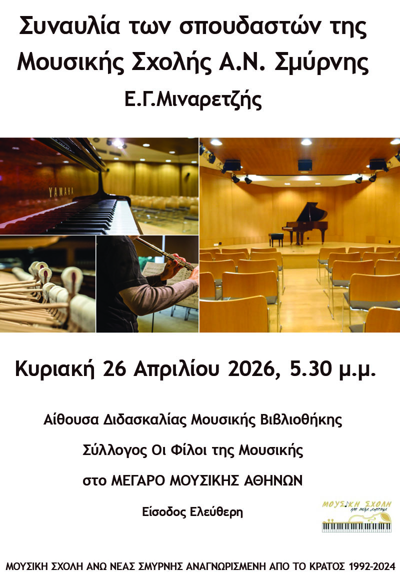 26 Απρ 2026 / 17:30 Περιγραφή: 7af28d51-10b9-4df2-9cd1-aa1526af3d22.jpeg Χώρος: Αίθουσα ΔιδασκαλίαςΚόστος: Είσοδος ελεύθερη