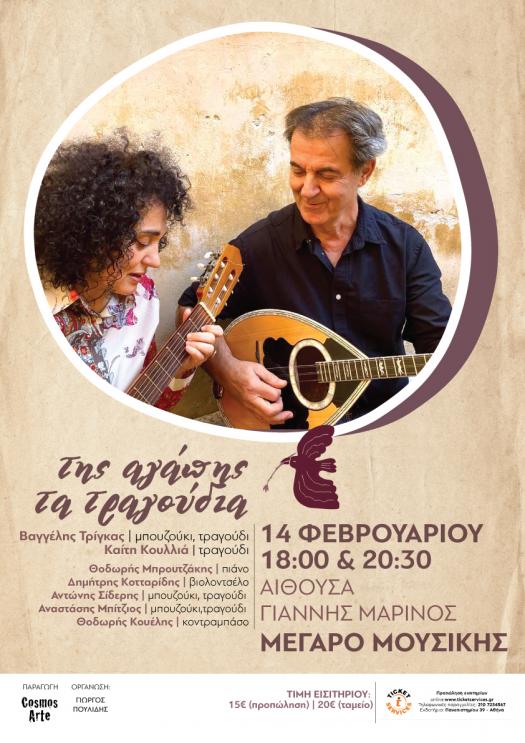 Οι εξαιρετικός δεξιοτέχνης του μπουζουκιού ΒΑΓΓΕΛΗΣ ΤΡΙΓΚΑΣ συναντά τη σπουδαία τραγουδίστρια ΚΑΙΤΗ ΚΟΥΛΛΙΑ και με τους ξεχωριστούς μουσικούς τους, στήνουν ένα μουσικό οδοιπορικό γεμάτο από τα λαϊκά τραγούδια που μιλούν για τον έρωτα σε όλες του τις εκφάνσεις.