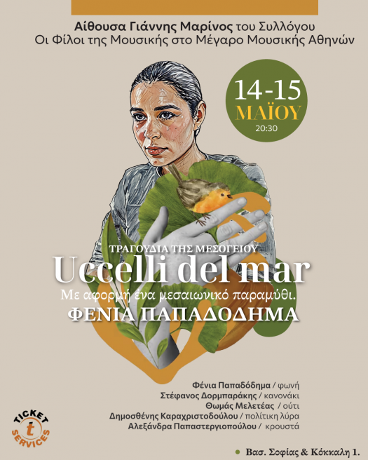 Η μουσική παράσταση «Uccelli del mare», που παρουσιάστηκε στο Μέγαρο Μουσικής Αθηνών, το Φθινόπωρο του 2025 με τεράστια επιτυχία, επιστρέφει για δύο μόνο παραστάσεις στις 14 και 15 Μαΐου, στις 20.30, στην Μουσική Βιβλιοθήκη, αίθουσα Γ. Μαρίνος.