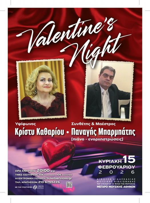 Η καλλιτεχνική σύμπραξη των δύο καλλιτεχνών με μουσικές που μιλούν κατευθείαν στην καρδιά, συνθέτουν ένα μουσικό ταξίδι αφιερωμένο στη δύναμη και τη μαγεία της αγάπης και της νύχτας του Αγ. Βαλεντίνου προσφέροντας στο κοινό μια ολοκληρωμένη εμπειρία υψηλής ποιότητας στο μοναδικό περιβάλλον του Μεγάρου Μουσικής Αθηνών.