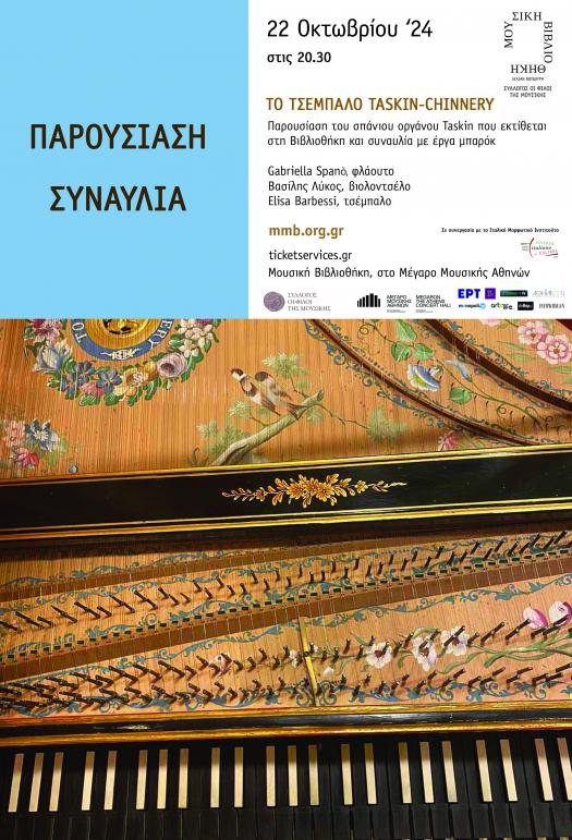 Το σπάνιο τσέμπαλο Taskin Chinnery, ευγενικό δάνειο της Ελίζας Μπαρμπέσσι προς το Σύλλογο Οι Φίλοι της Μουσικής, βρίσκεται από φέτος στη Μουσική Βιβλιοθήκη «Λίλιαν Βουδούρη».