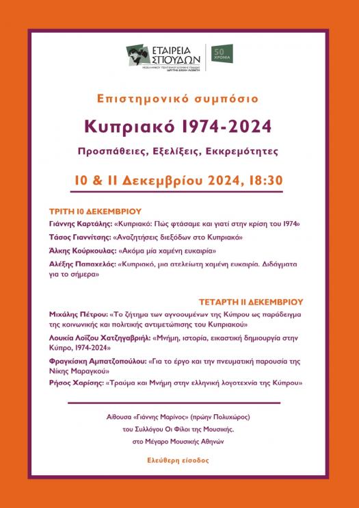 «Κυπριακό 1974-2024. Προσπάθειες, εξελίξεις, εκκρεμότητες»