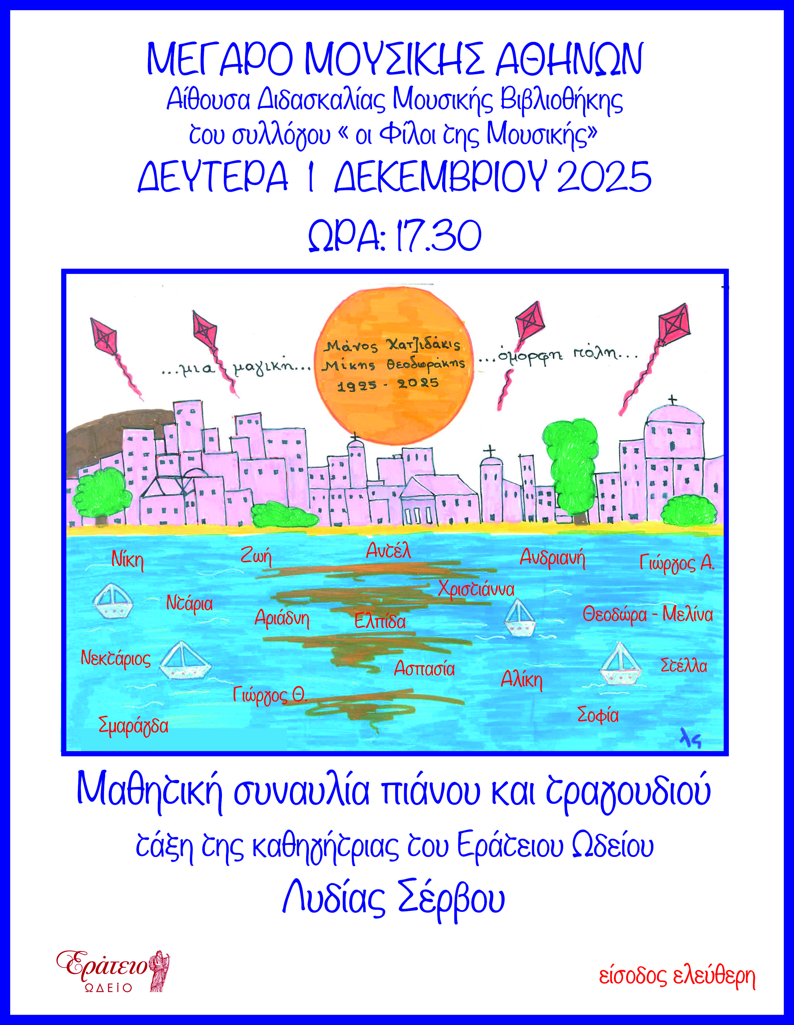 01 Dec 2025 / 17:30 Description: prosklisi_dekemvrios_2025.jpg Venue: Lecture RoomProduction: Εράτειο Ωδείο Cost: Είσοδος ελεύθερη