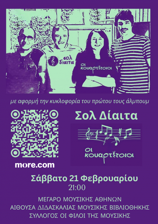 Με παχουλά λογοπαίγνια και πειρά(γ)ματα της γλώσσας, «Οι Κουαρτέτοιοι», σε μουσική τού συνθέτη Νίκου Πλατύραχου και στίχους τής ηθοποιού Τίνας Γιωτοπούλου, συνθέτουν μια σατιρική μουσική παράσταση με τίτλο «Σολ Δίαιτα», τη σκηνοθετική επιμέλεια της οποίας υπογράφει ο Γιώργος Τζαβάρας. «Οι Κουαρτέτοιοι» δημιουργούν ιστορίες για όσα, καθημερινά, μας βασανίζουν και τις… σερβίρουν με χιούμορ μαριναρισμένο σε λίγη αυτοκαταστροφή και μια κουταλιά λίπους. Ακροβατούν με έναν θεατρικό τρόπο από τους έρωτες στις δίαιτες, από το tango στο ρεμπέτικο και από το swing στο… dining, δημιουργώντας ένα μεταθερμιδικό καμπαρέ.