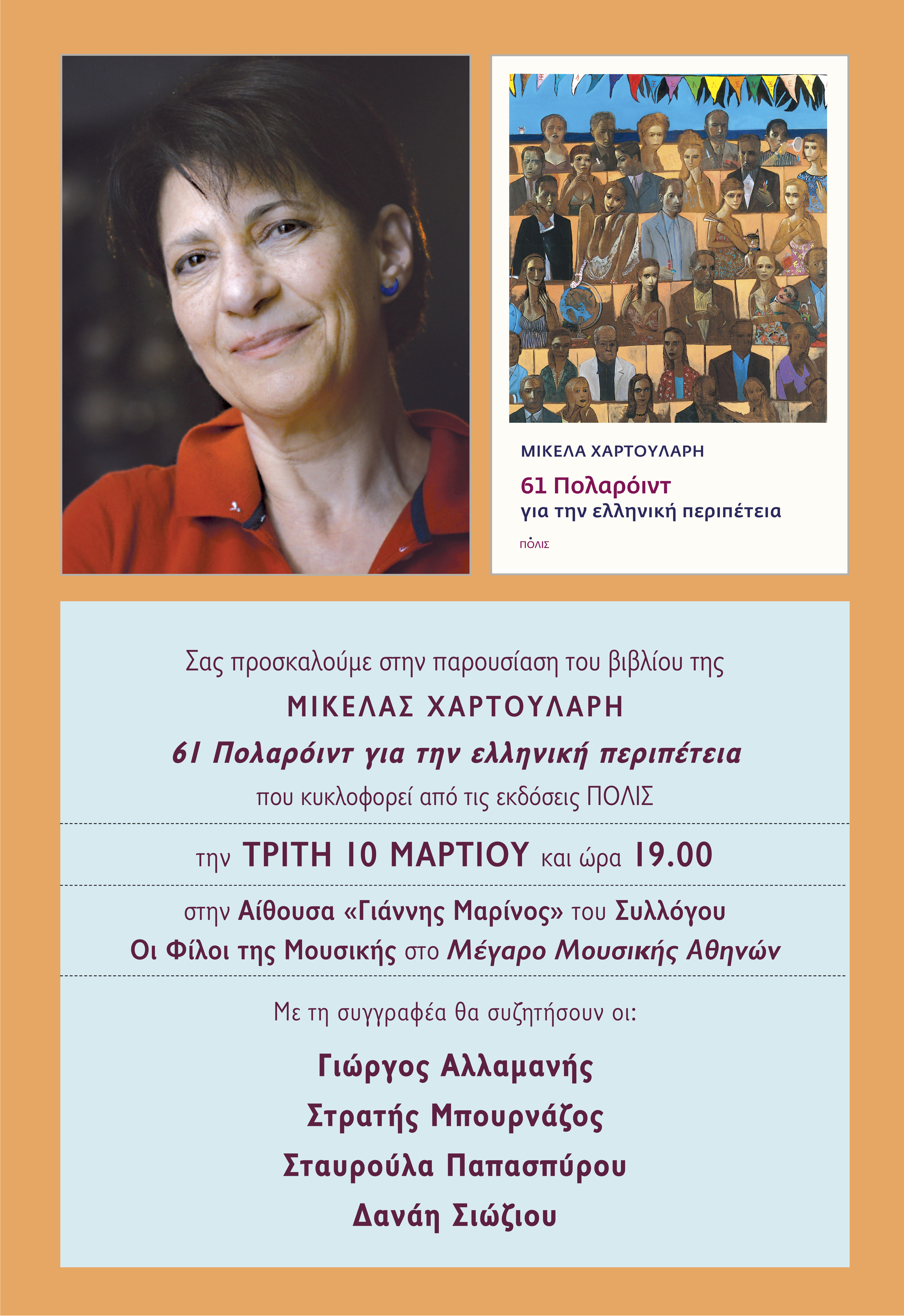 10 Mar 2026 / 19:00 Description: mikela_prosklisi_33_48-layout_1.jpg Venue: Giannis Marinos HallCost: Είσοδος ελεύθερη