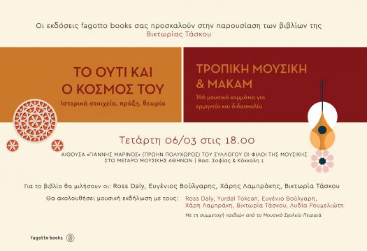 Οι εκδόσεις fagotto books σας προσκαλούν στην παρουσίαση των βιβλίων της Βικτώριας Τάσκου: "Το ούτι και ο κόσμος του" και "Τροπική μουσική & μακάμ".