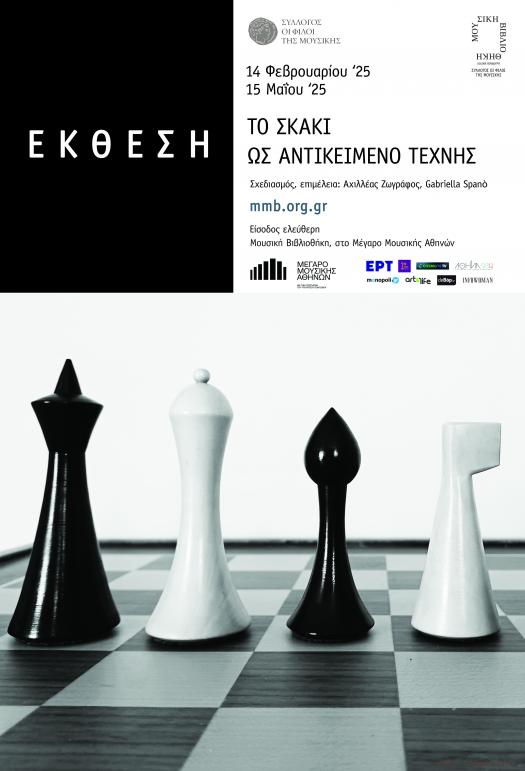 Η Βιβλιοθήκη «Λίλιαν Βουδούρη» του Συλλόγου Οι Φίλοι της Μουσικής διοργανώνει μία μοναδική έκθεση την πρώτη στο είδος της στην Ελλάδα με σκακιέρες και σκακιστικά κομμάτια από όλο τον κόσμο, και μας προσκαλεί σ’ ένα ταξίδι στο χώρο και στο χρόνο με αντικείμενα που χρονολογούνται από τον 19ο αιώνα έως τις μέρες μας και προέρχονται από όλα τα μήκη και τα πλάτη της γης (από την Κίνα έως την Αφρική κ.α.). Επιλεγμένα βιβλία από την πλούσια ιδιωτική συλλογή του μουσικού και σκακιστή Αχιλλέα Ζωγράφου που αφορούν το σκάκι εμπλουτίζουν την έκθεση.