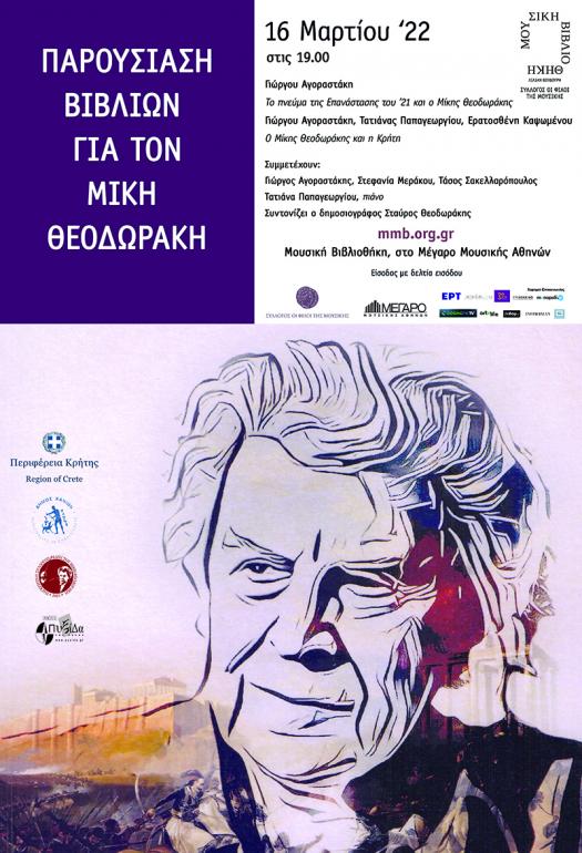 Παρουσίαση των βιβλίων Το πνεύμα της Επανάστασης του ’21 και ο Μίκης Θεοδωράκης (Γιώργος Αγοραστάκης, εκδόσεις Πυξίδα της Πόλης, 2021) και Ο Μίκης Θεοδωράκης και η Κρήτη, (Γιώργος Αγοραστάκης, Τατιάνα Παπαγεωργίου, Ερατοσθένης Καψωμένος, έκδοση ΠΕΚ-Πυξίδα της Πόλης και ΚΕΠΠΕΔΗΧ-ΚΑΜ, 2021).